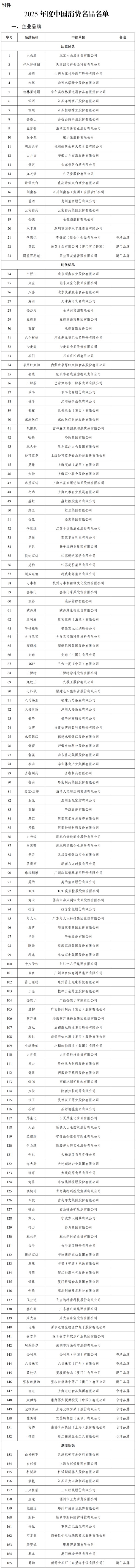 据先容,凭证《工业和信息化部办公厅对于组织搜集2025年度中国耗尽名品的示知》,经企业通告、省级工业和信息化驾御部门初审保举、大家评审和网上公示,工业和信息化部笃定了2025年度中国耗尽名品名单,现赐与公布。